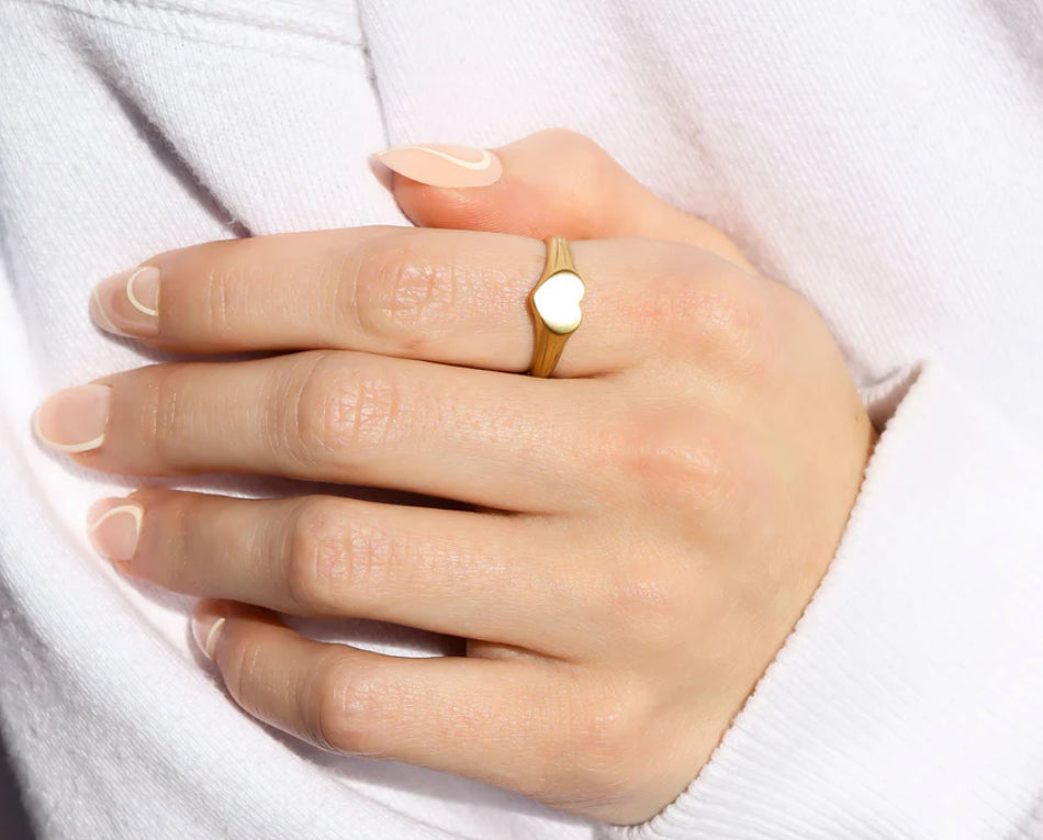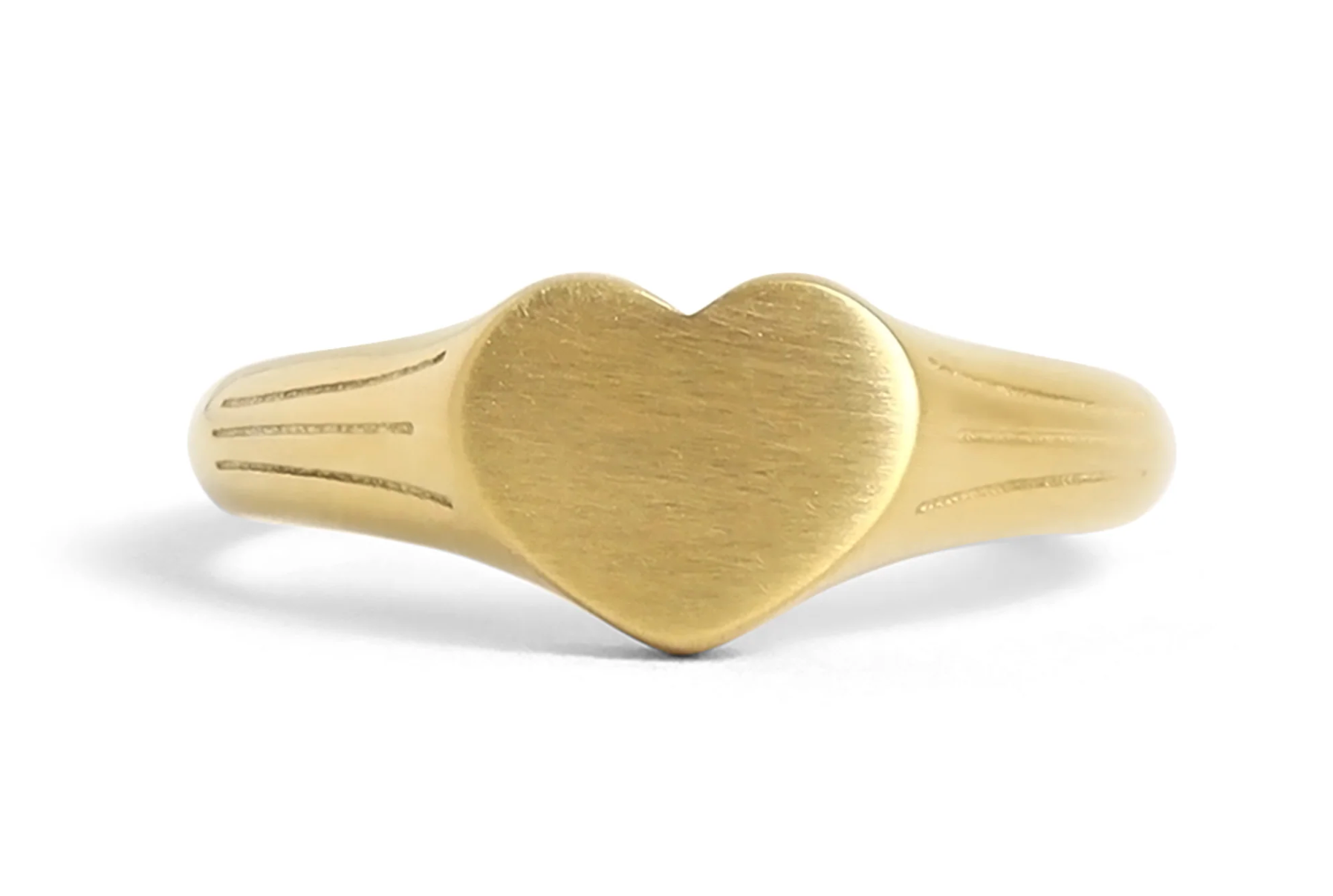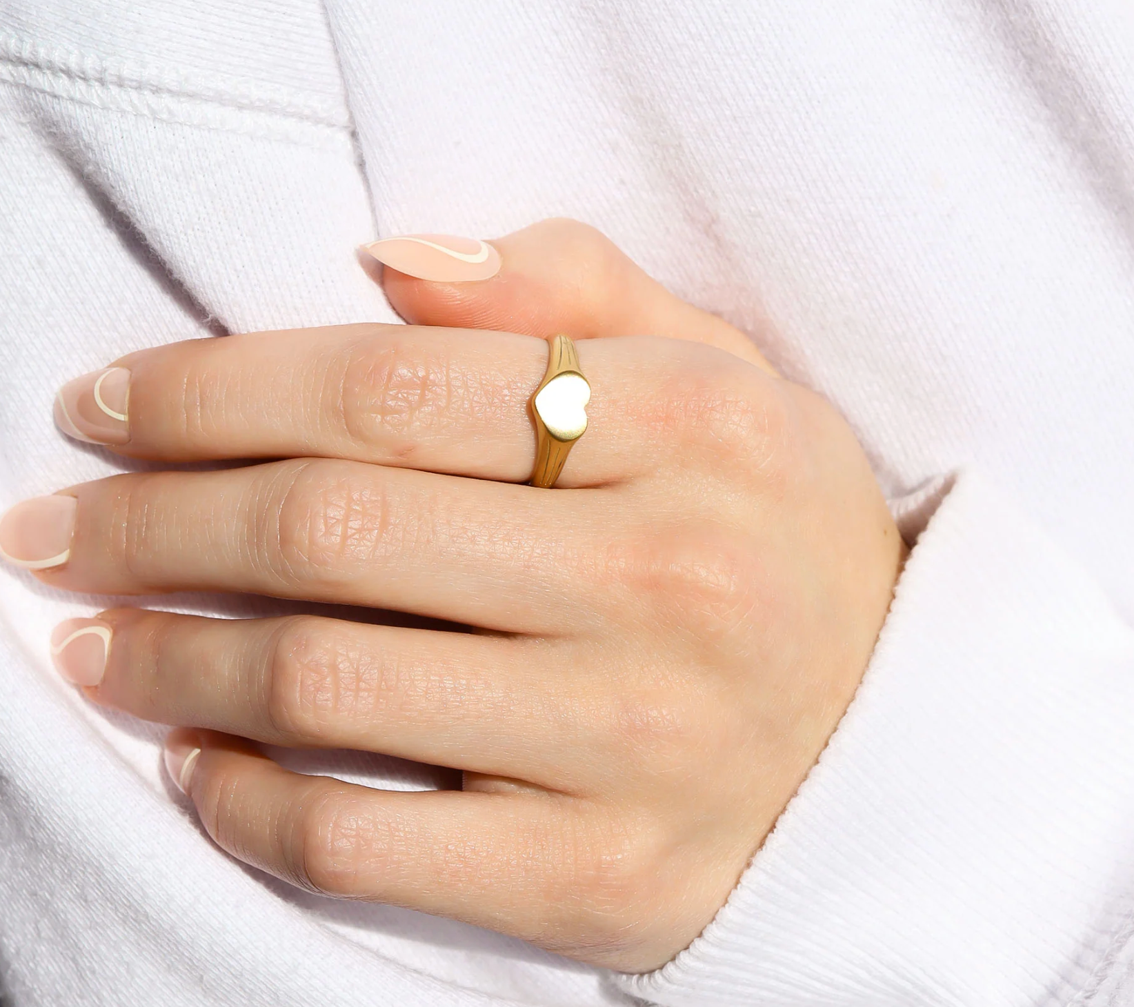 Der gravurfähige Herz-Siegelring ist mehr als nur Schmuck – er ist ein Symbol für Liebe, Verbundenheit und besondere Erinnerungen. Mit seiner schlichten, herzförmigen Oberfläche bietet er Raum für deine persönliche Botschaft: Initialen, ein wichtiges Datum oder ein liebevoller Schriftzug machen diesen Ring zu einem einzigartigen Erinnerungsstück – für dich oder einen besonderen Menschen.