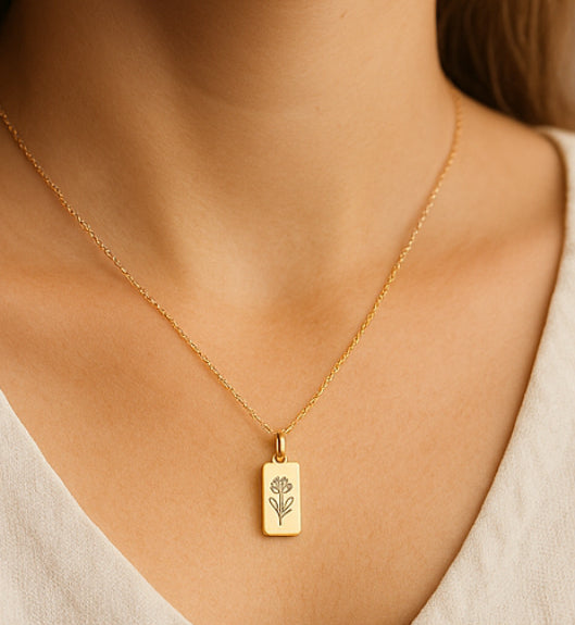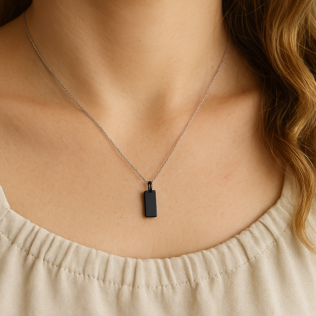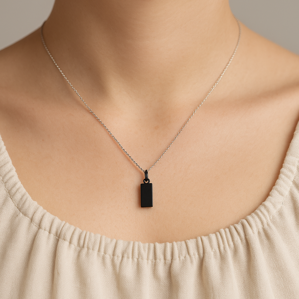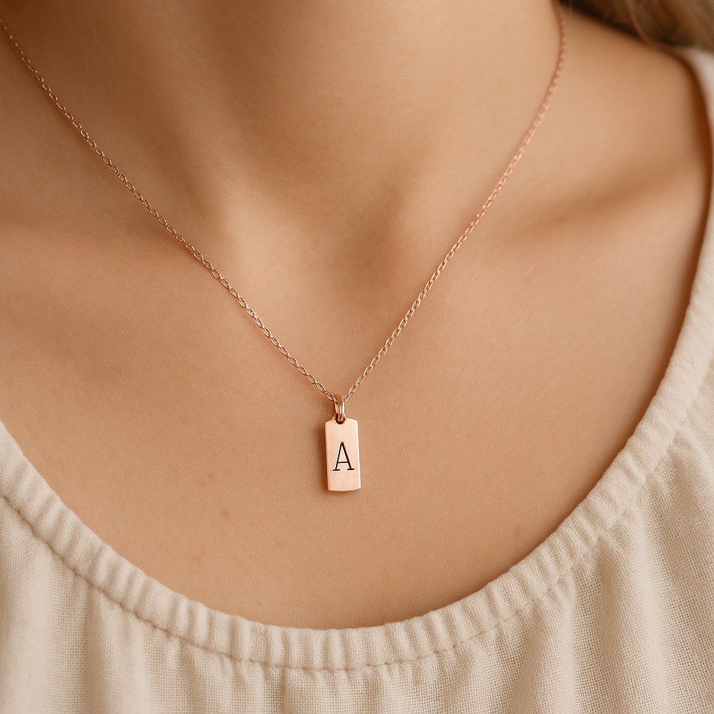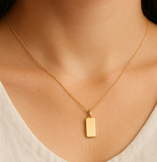 Dieser zierliche rechteckige Anhänger aus hochwertigem Edelstahl (13mm x6mm) ist mit einer langlebigen 18k Vergoldung (wahlweise in Gold, Roségold oder Silber, Schwarz) veredelt. Trotz der kleinen Fläche lässt sich der Anhänger schön und präzise gravieren - z.B. mit einem Namen, Datum, oder Symbol. Ideal für feine, minimalistische Statements mit persönlichem Charakter.