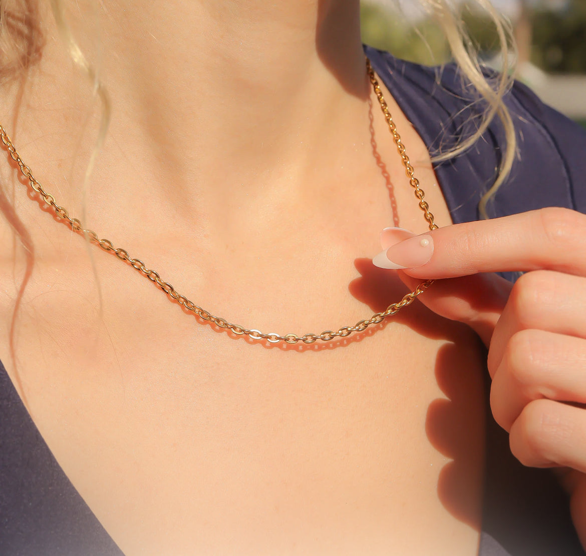 - Sanft zur Haut: Die Kette ist frei von Nickel, Blei und anderen reizenden Metallen – ideal für empfindliche Haut. Kein Anlaufen, kein Grünfärben.