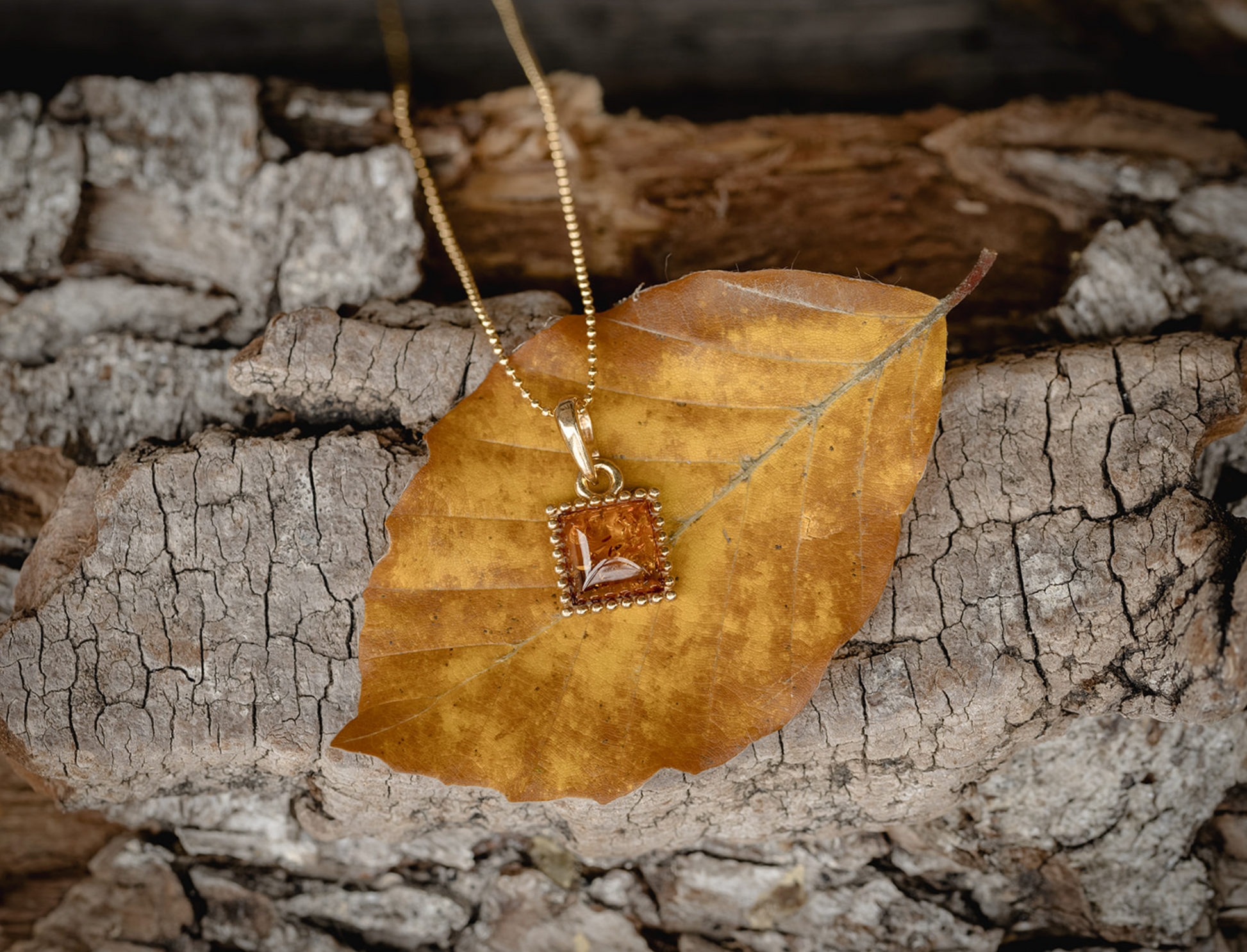 TIPP: Kombiniere den Anhänger mit unseren quadratischen Bernsteinohrsteckern - gemeinsam entsteht ein harmonisches, elegantes Set.